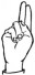 На ћирилици написано БРАНИСЛАВ ЦАПУРЕЛОВИЋ састоји се из 20 слова [?]. Исписано ћириличном једноручном азбуком за глувонеме: